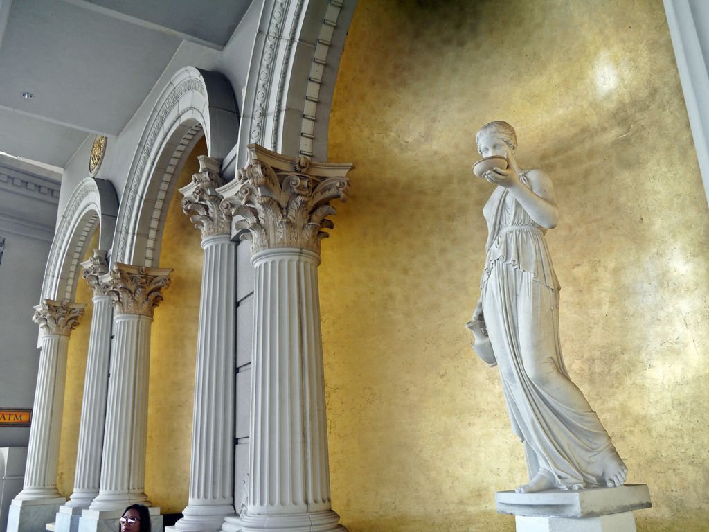 抵達中庭圓環的地方上方有噴水池下方有水族箱